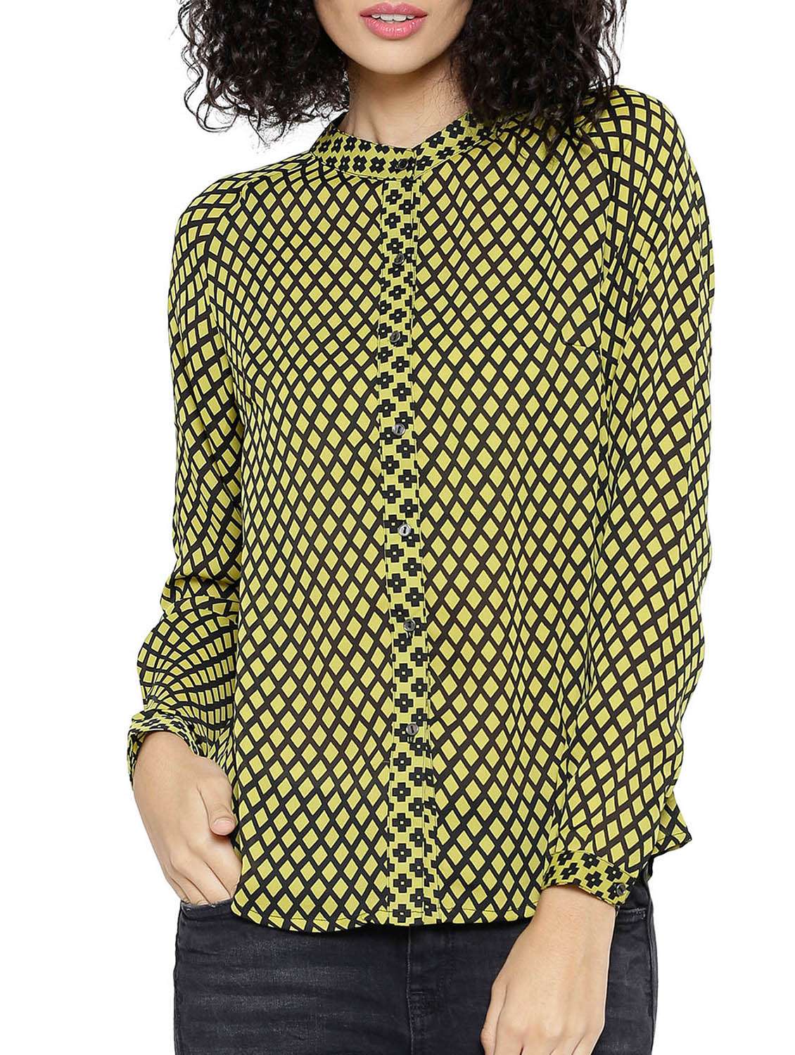 yellow poly georgette regular shirt