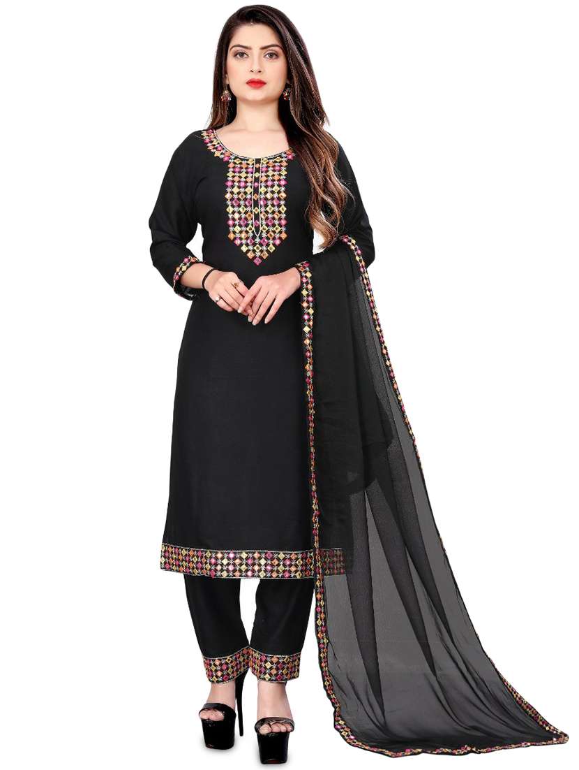- Find gorgeous sets of ethnic wears in trending designs in black colors suitable for casual wear of occasions.