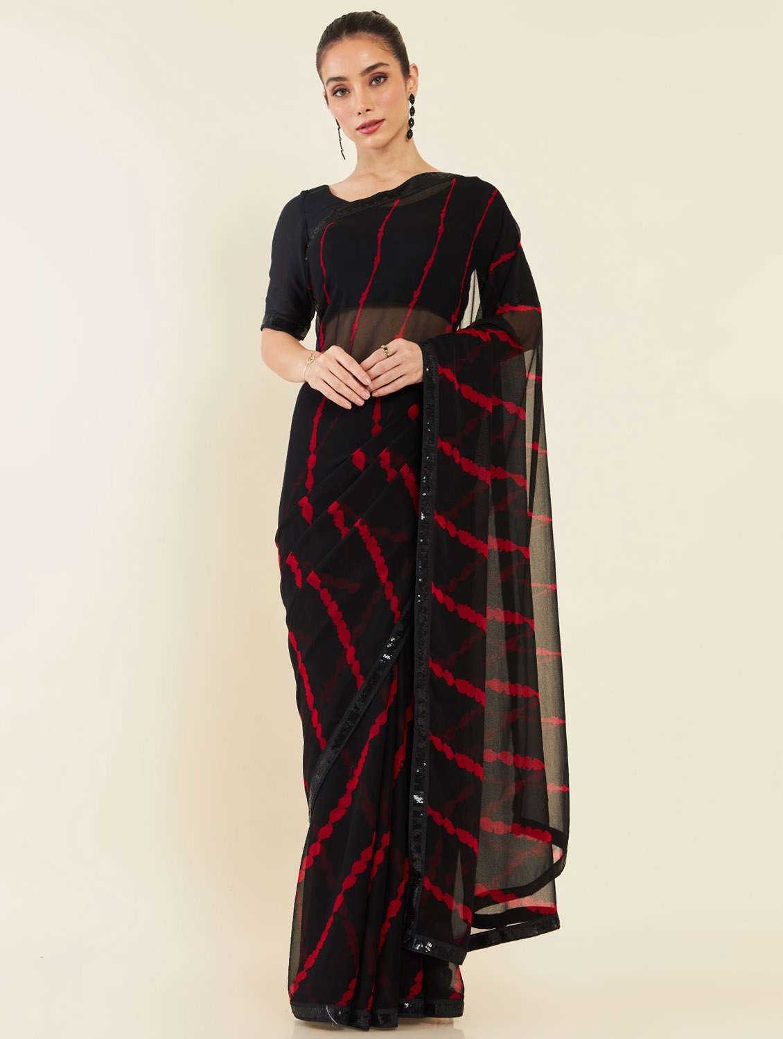 - » women's stripes black colored saree with blouse