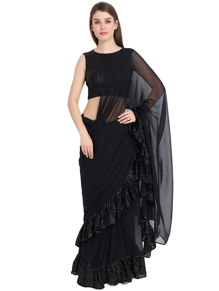 ruffle border fusion saree with blouse