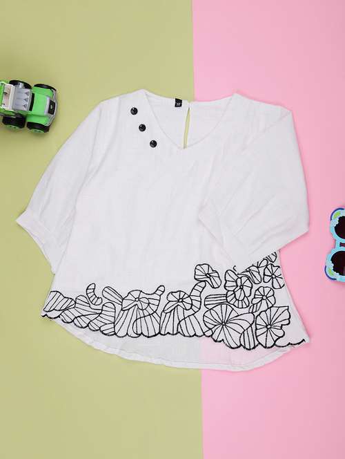 girls solid with work three quarter sleeve top