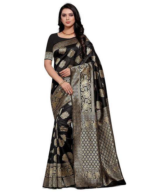 - » self design zari work woven saree with blouse