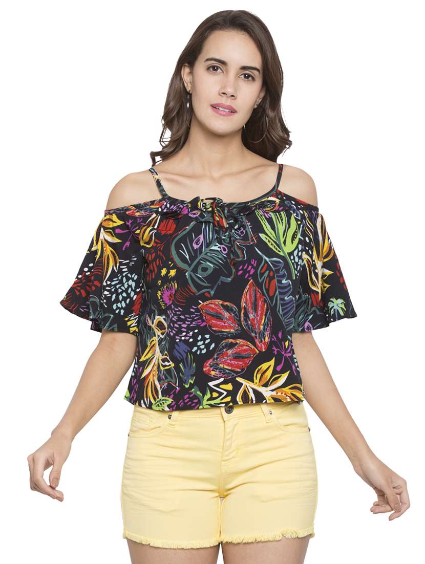 - » tie neck cold shoulder top