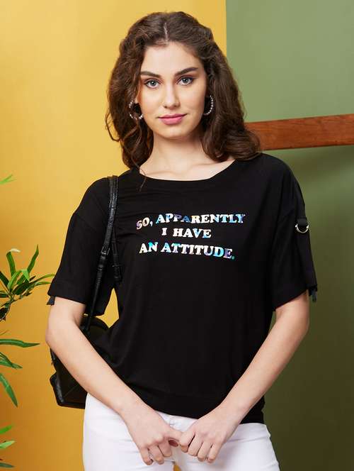 - » women typographic round neck boxy t-shirt