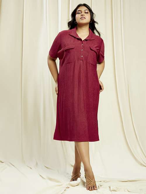 - » globus gloplus women black shirt collar self design pocket detail side slits plus size midi sheath dress