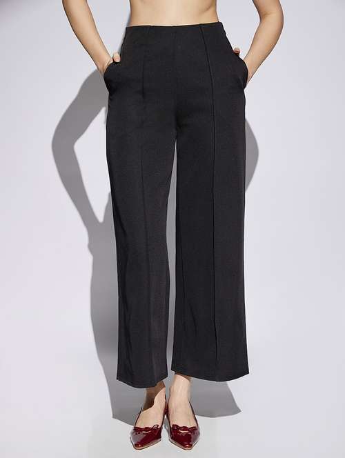women solid high rise wide leg trouser - 22013386 -  Standard Image - 0 women solid high rise wide leg trouser - 22013386 -  Zoom Image - 0