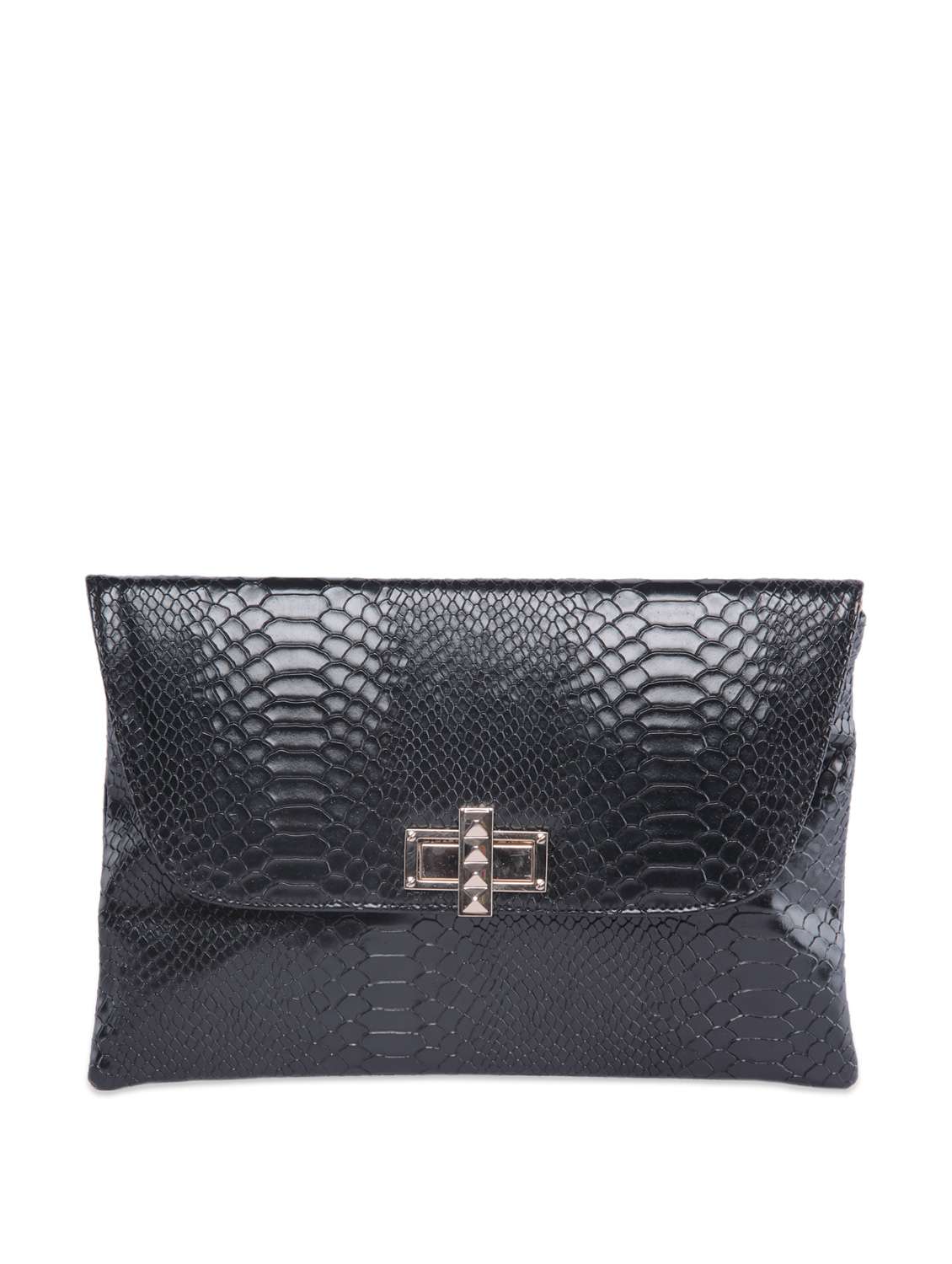 - » Black glossy envelope clutch with snake skin texture