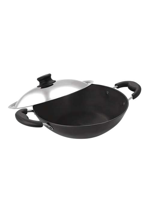 - » pristine hard anodised deep fry pan kadai with lid, 26 cm