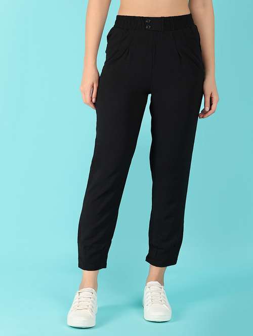 - » women black solid mid rise jogger