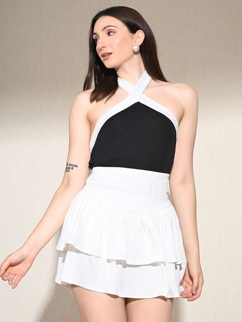 women solid halter neck crop top
