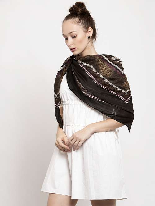 black polyester printed scarf