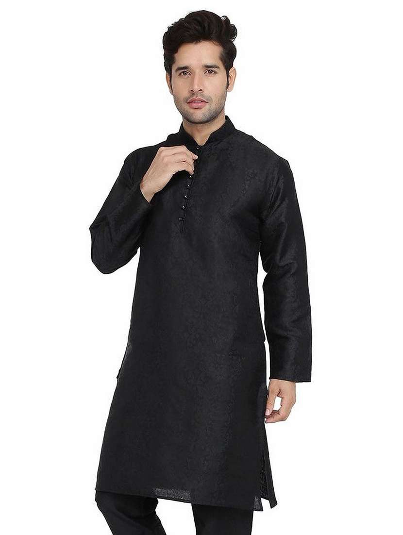 - » men self designed mandarin collar long sleeve kurta