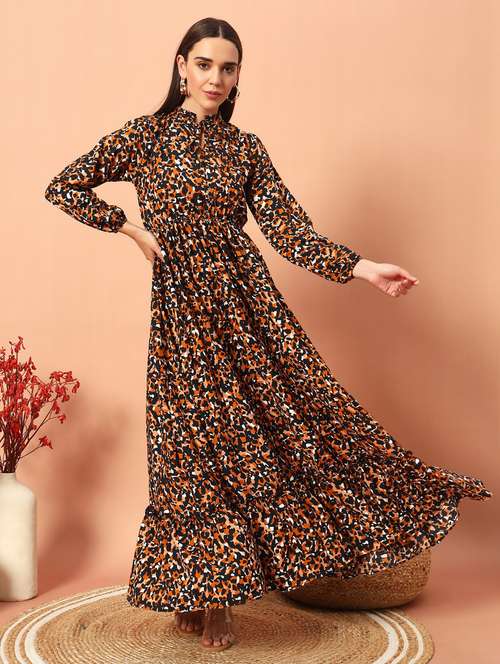 - Looking for some awesome collection of dresses? Well, lay your hands on this dress from Jash Creation and also get the option of choosing from brown colour.