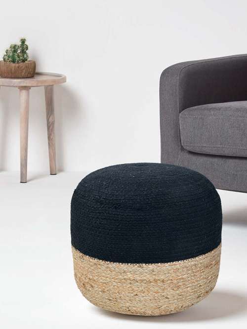 - » sheen décor jute round pouffe in natural and black color size(16x16x14 inches)
