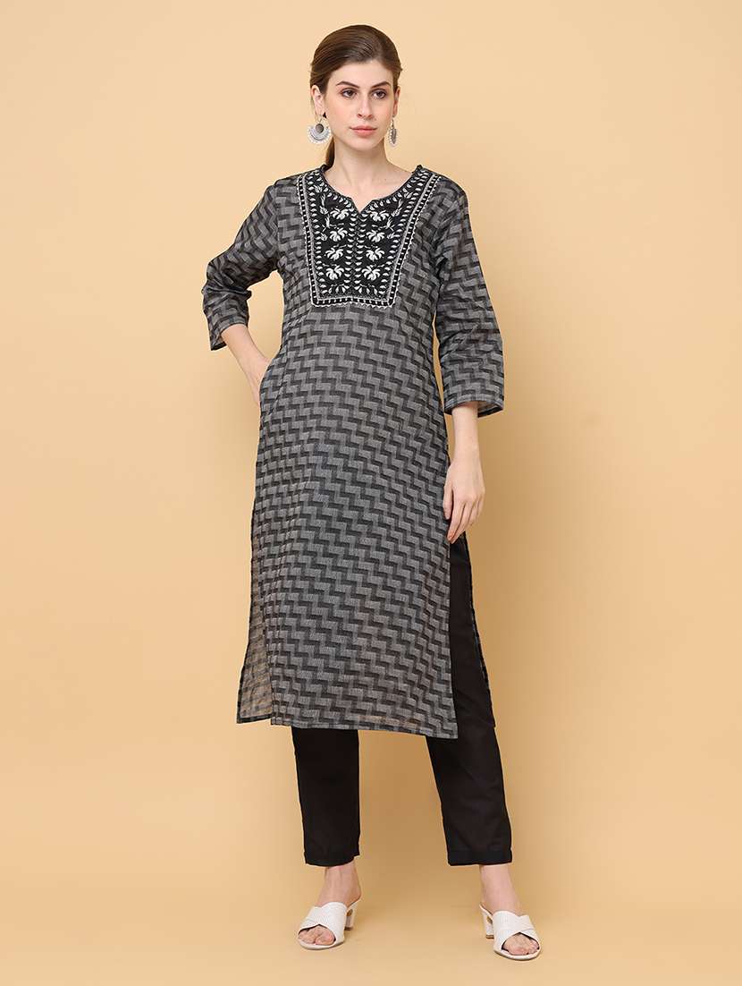 women black notch neck kurta pant set