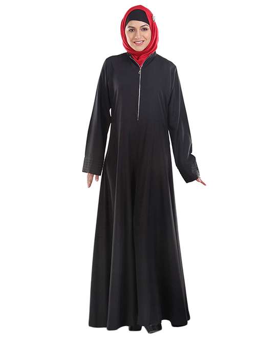 - » front opening zipper trim black abaya