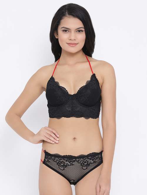 • LimeRoad brings you this exotic lingerie set from Clovia made of lace material in black colours.