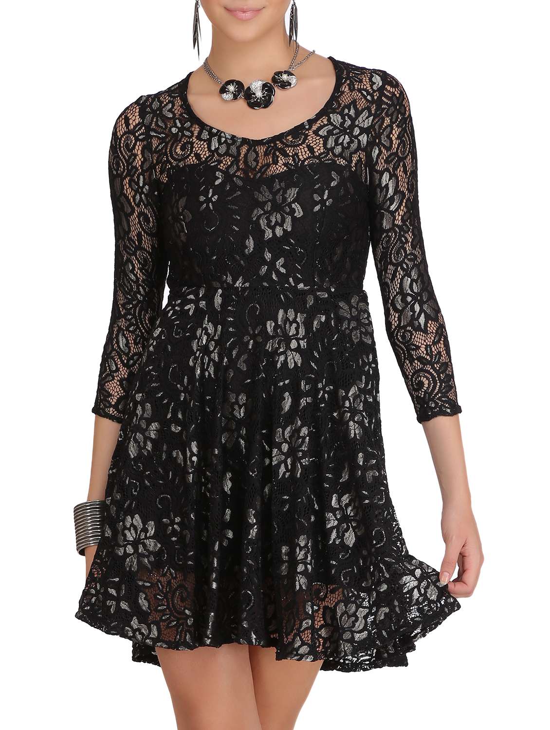 floral mesh fit and flare dress