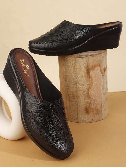 Dollphin Women Leather Wedge Heel Back Open Mules Slip on Fashion Leaser Cut Design RP-1705