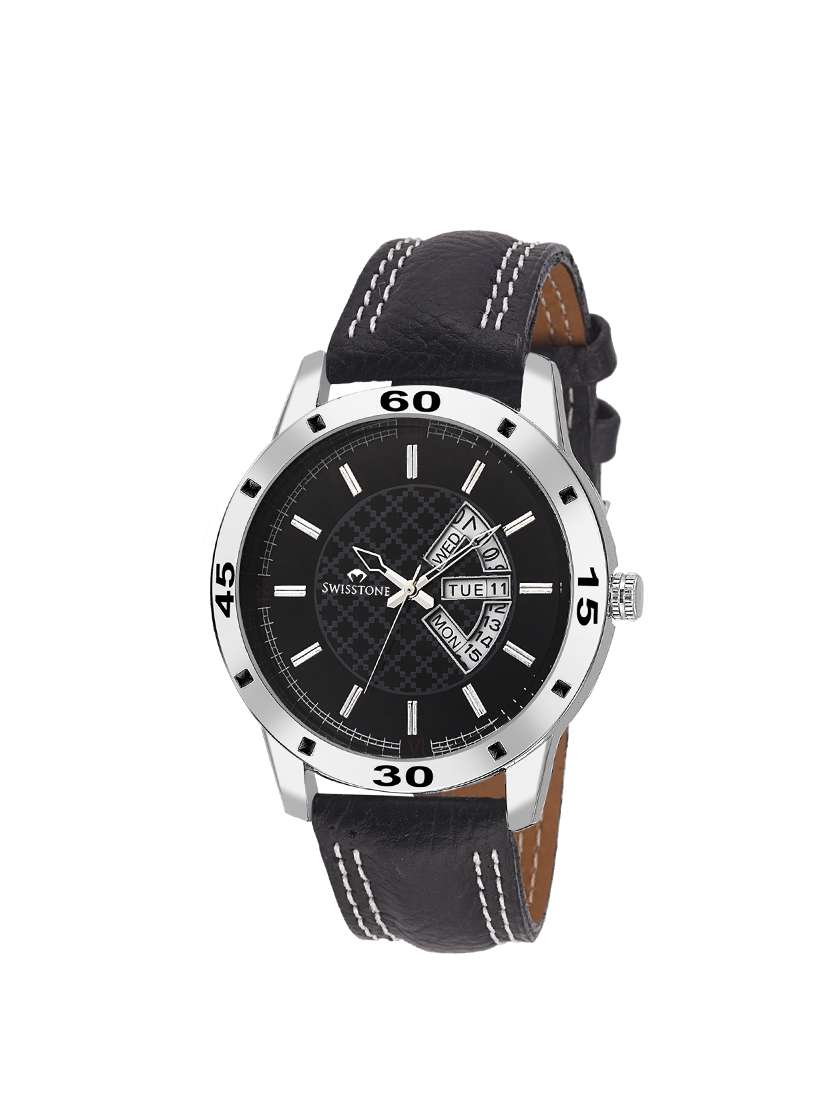 - » swisstone wt315-bk day and date display black leather strap wrist watch for men