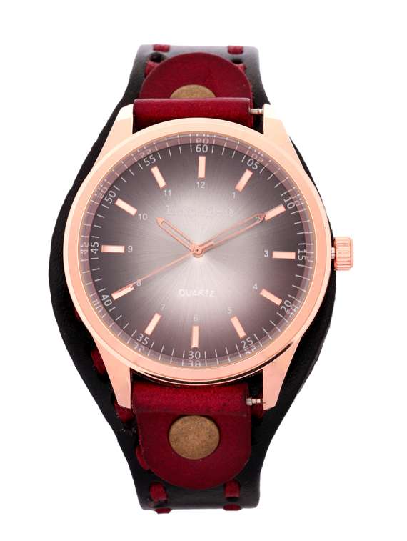 - » leatherhood 18k rose gold plated handcrafted genuine black red leather analog black men's watch