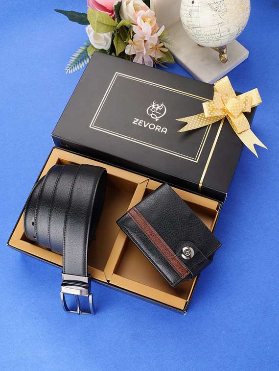 - » men black leather wallet & belt gift combo
