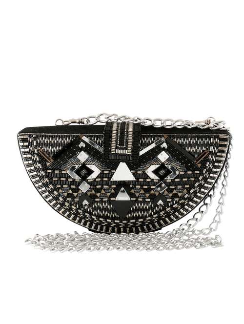 - » black beads embellished box clutch