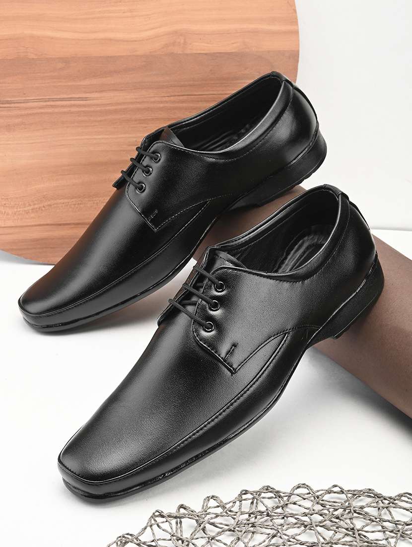 black leatherette laceup derbies