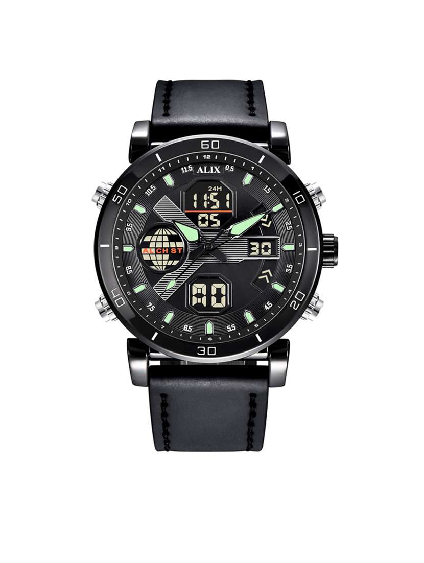 black color sports stylish features loaded leather sports analog-digital watch - for men 3042 - 21530051 - Very Small Image - 1