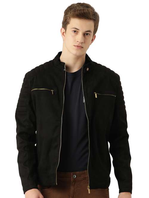 men solid long sleeved biker jacket