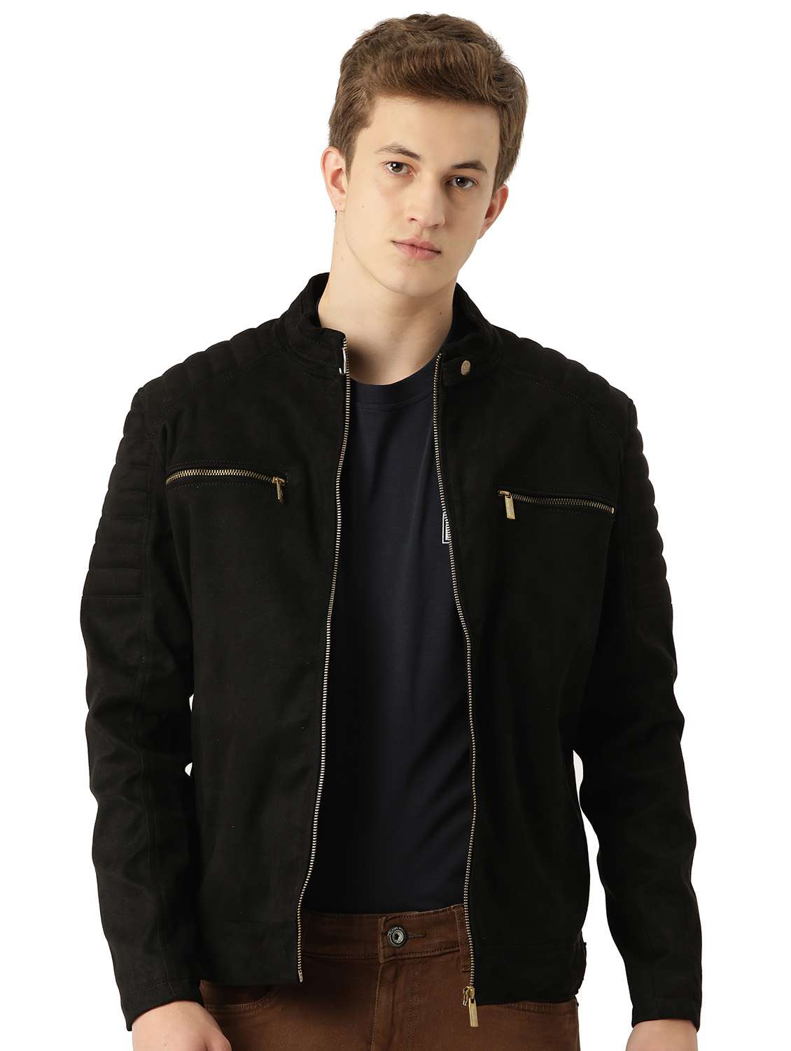 men solid long sleeved biker jacket - 21458304 - Very Small Image - 1