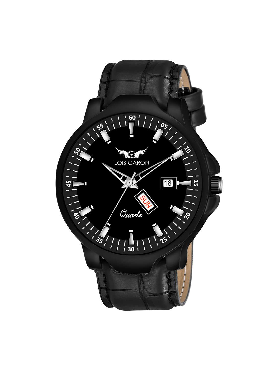 black dial and strap dial day & date functioning watch analog watch