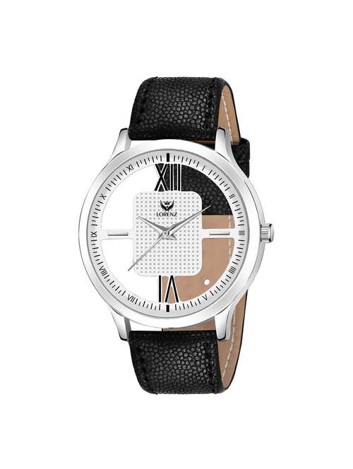 - » lorenz black leather strap & transparent stylish white dial analogue watch for men | mk-3096k