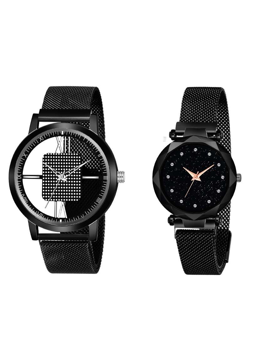 black couple analog watch combo