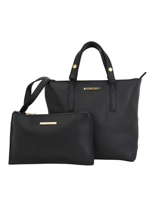 black leatherette (pu) combo handbag