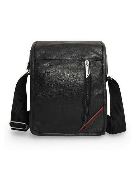 The Priority men's sling bag is a stylish addition to a look that perfectly combines functionality and style. This trendy shoulder bag is made of quality synthetic leather and has a strong, non-detachable strap for additional comfort and a zipper closing for added security. All your essentials will have enough room in the main compartment and additional pockets. You may wear this multipurpose bag in a variety of ways, including as a messenger bag, shoulder bag, handbag, or even as a sturdy hiking or vacation companion. This bag is the perfect addition to any outfit, whether you're going to the workplace, school, or the great outdoors. With a freely adjustable shoulder strap, you can adjust it according to your height and comfort requirements.