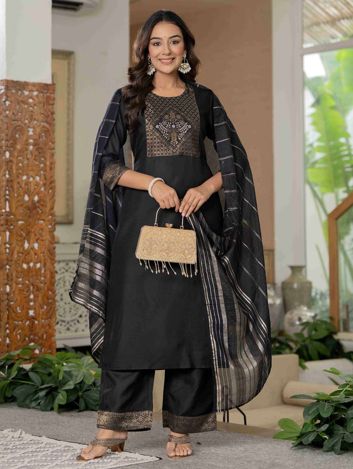 - Find gorgeous sets of ethnic wears in trending designs in black colors suitable for festive wear of occasions.