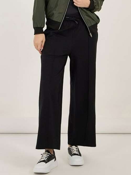 women black solid mid rise straight trouser