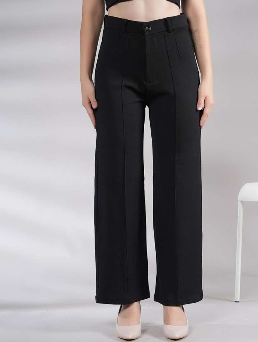 women solid high rise straight trouser