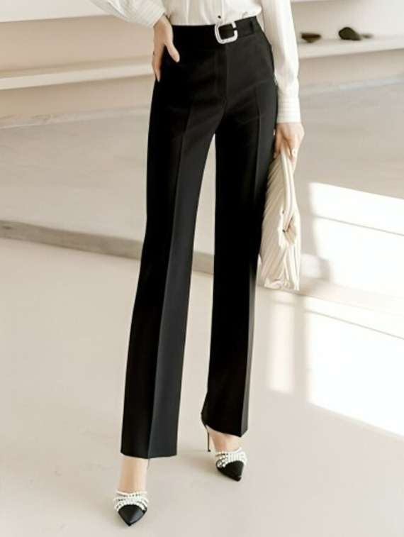 Elevate your workwear wardrobe with these elegant black wide-leg trousers, designed for both comfort and sophistication. Featuring a mid-waisted fit with a classic front button closure, these trousers offer a flattering silhouette that enhances your shape while providing all-day ease. The tailored front pleats and clean lines create a polished, professional look—perfect for the office, meetings, or formal events.