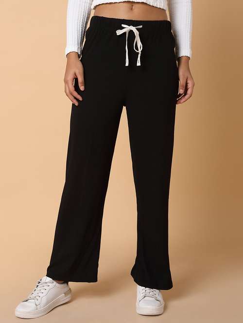 SHOWOFF Women's Flat Front Solid Black Trousers