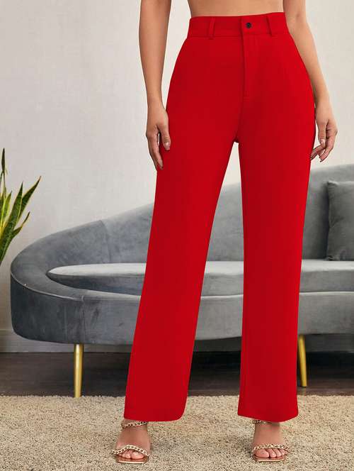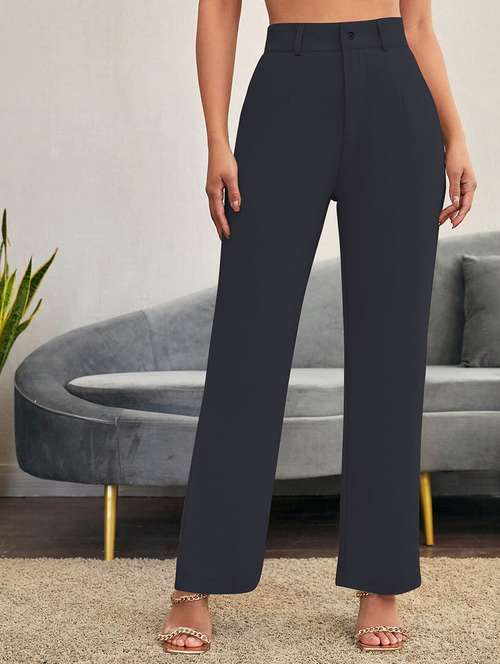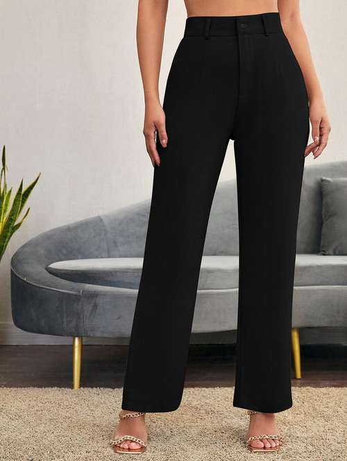 Elevate your formal look with TOOCHKI's Solid Black Lycra Straight Pant for Women. Sleek, stylish, and comfortable, they offer a flattering fit with stretch for easy movement—perfect for office wear and formal events.