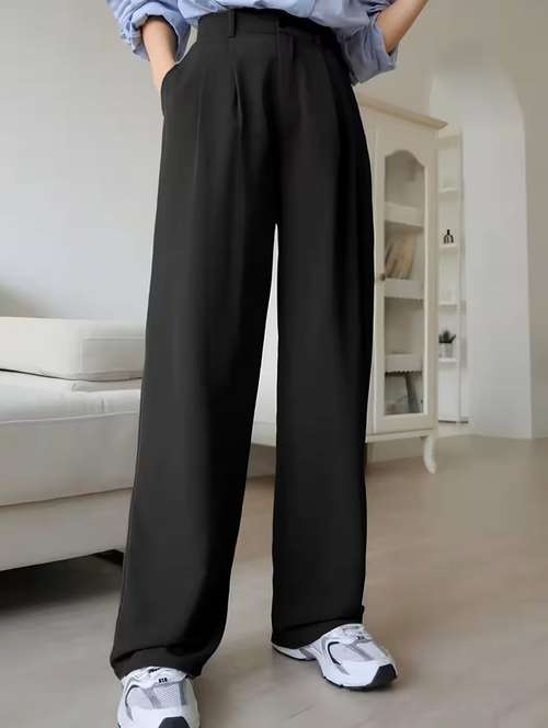 women solid high rise korean trouser - 22017477 - Very Small Image - 1