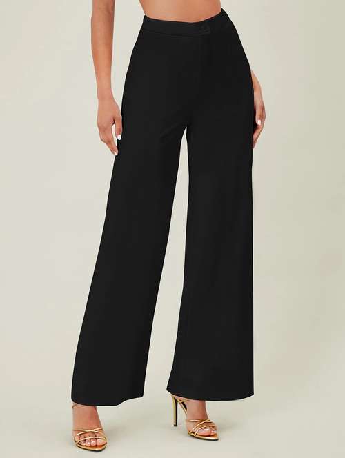 - » women solid high rise wide leg trouser