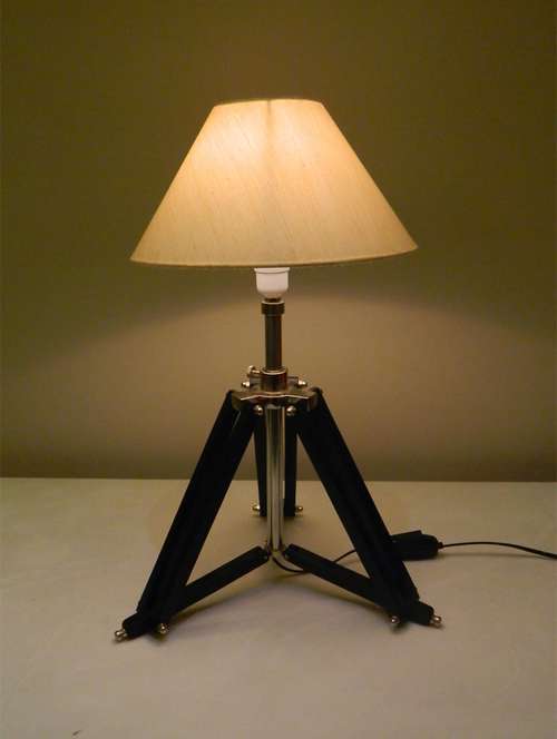 tripod table lamp in mango wood with fabric shade