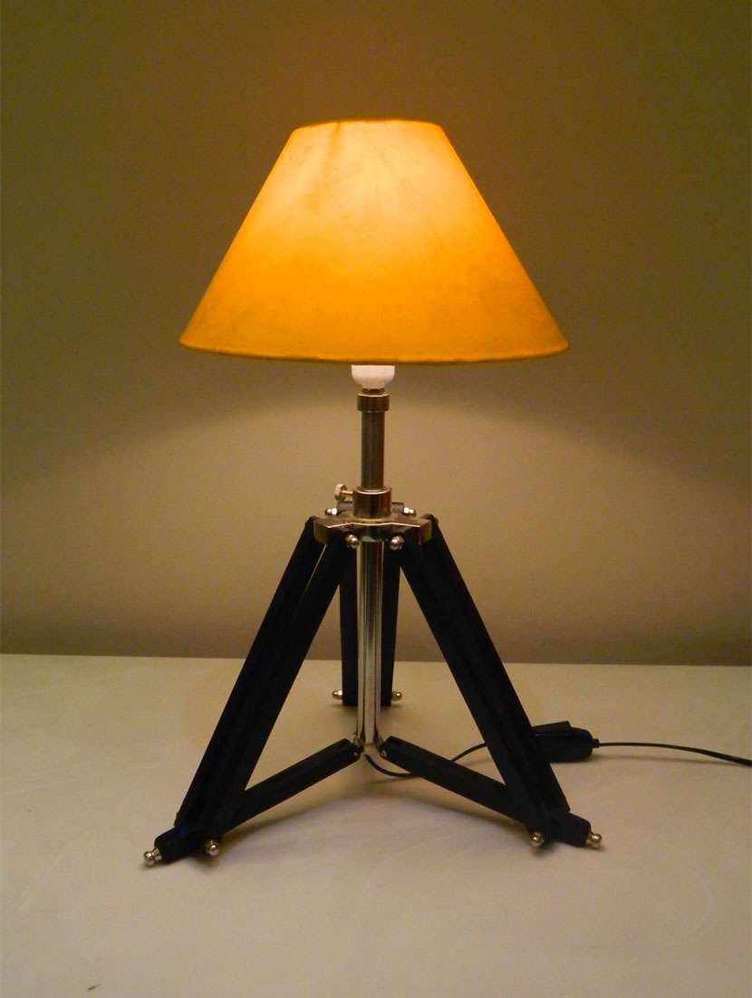 tripod table lamp in mango wood with fabric shade