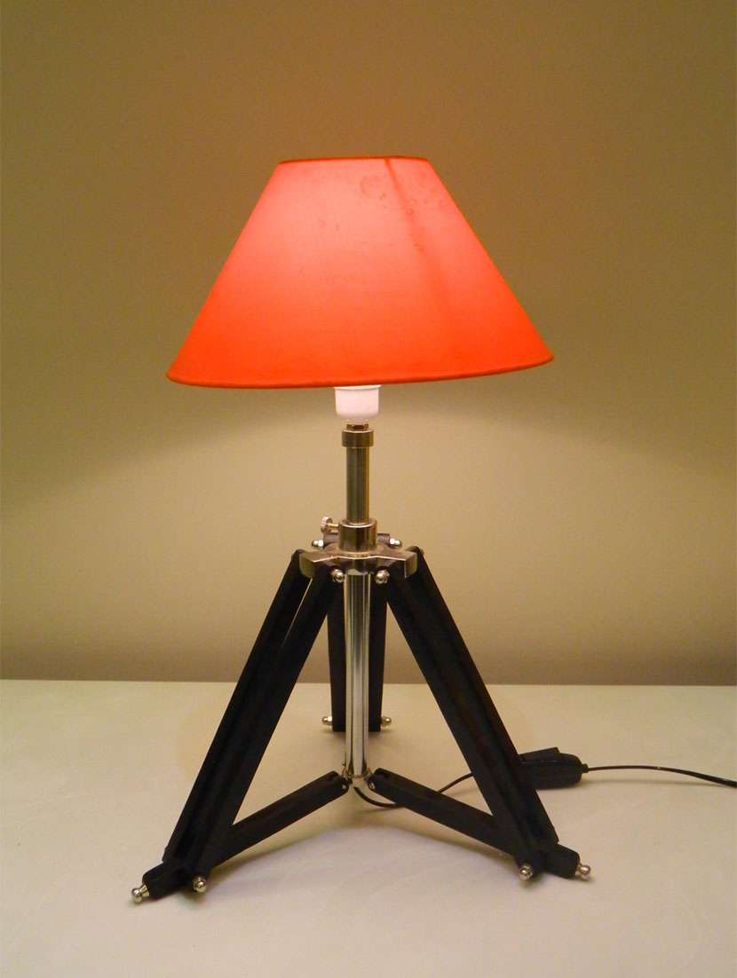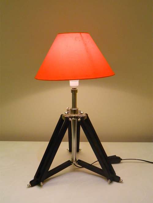 tripod table lamp in mango wood with fabric shade - 11106764 - Very Small Image - 1