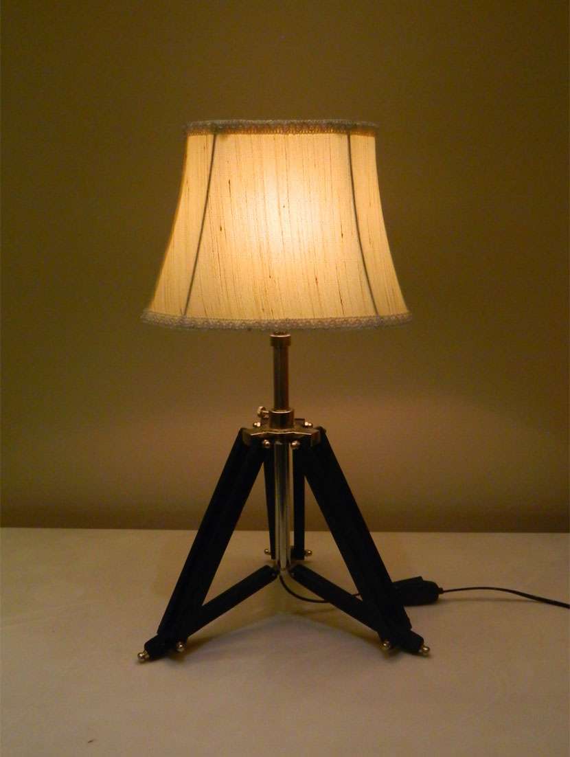 tripod table lamp in mango wood with fabric shade