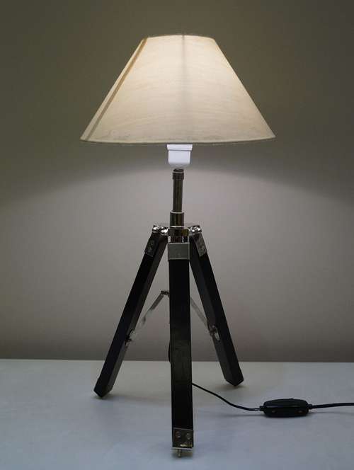 tripod table lamp in mango wood with fabric shade - 11106779 - Very Small Image - 1