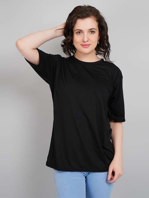 women round neck solid regular t-shirt